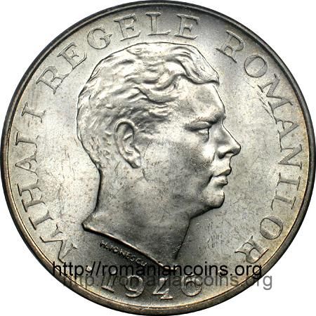 Pe o faţă a monedei scrie „Mihai I, Regele Românilor“ şi apare anul fabricaţiei - 1946, iar pe verso - valoare monedei: 100.000 de lei. Moneda a apărut pe piaţă în peste 2 milioane de bucăţi.