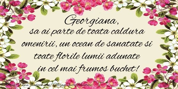 Felicitări de Sf. Gheorghe: La mulţi ani, George! La mulţi ani, Georgiana! La mulţi ani de Sf. Gheorghe! „Zâmbeşte şi s-aveţi parte de toată distracţia şi emoţia specifică acestei zile, iar întreaga zi să vă fie binecuvântată cu fericire, bucurie, raze de soare şi prietenie.”