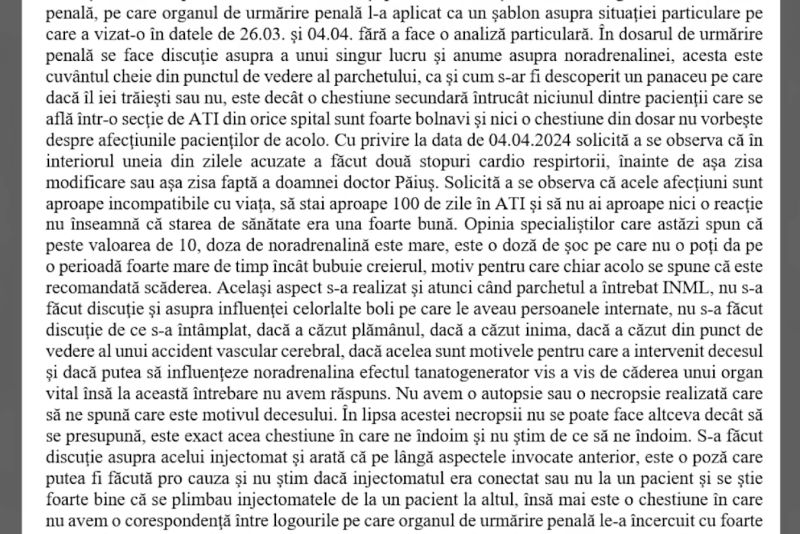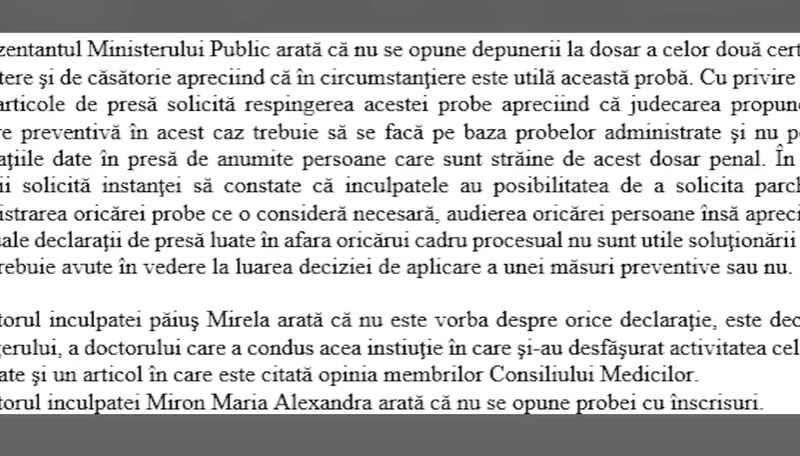 Am citit cu foarte mare atenție. Singura apărare cu ghilemele de rigoare acelor două doctorițe venite din partea avocaților, atenție, repet, din partea avocaților, pentru că ei ne acuză pe noi că noi vorbim despre niște proceduri medicale. Avocații lor fac exact același lucru. Exact același lucru. Deci singura lor apărare este de fapt contestarea probelor. Atât.