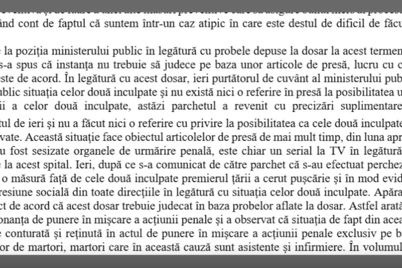 48 de pagini, foarte multe din însemnările de acolo sunt preluate din referatul procurorilor. Să știți că sunt și mai vehemente după ce am citit motivarea judecătorilor. Și după ce am văzut, așa zisa apărare acelor două doctorițe.