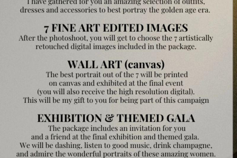 Fotografia fine art a devenit pasiunea și arta mea și vreau să o împărtășesc cu tine. O experiență fotografică de neegalat care culminează cu o expoziție stil galerie. O celebrare a femeilor și epocii de aur.