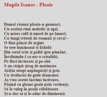 Ploaia de Magda Isanos. Subiecte ROMÂNĂ edu.ro - Evaluarea Naţională 2017: Atunci când elaborezi lucrarea la EVALUAREA NAŢIONALĂ 2017 ar trebui să ţii cont de urmatoarele: