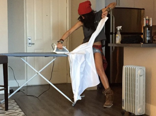 Mihaela Rădulescu este fată de casă. Vedeta şi-a uimit fanii, după ce a făcut publică o imagine în care apare în timp ce îi calcă o cămaşă iubitului ei.
