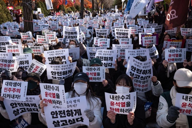 În scene care aminteau de acele proteste, mii de demonstranţi cu lumânări în mână s-au adunat în faţa parlamentului vineri seara, cerând destituirea lui Yoon. Mai multe demonstraţii sunt aşteptate sâmbătă, înainte de vot.