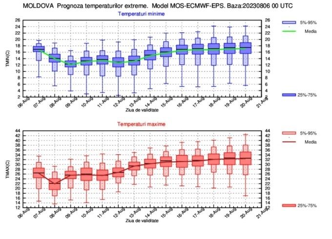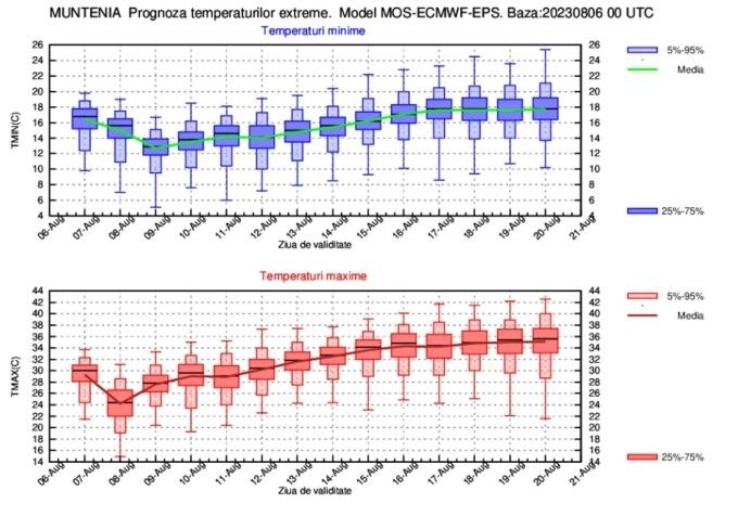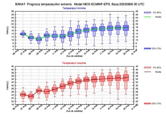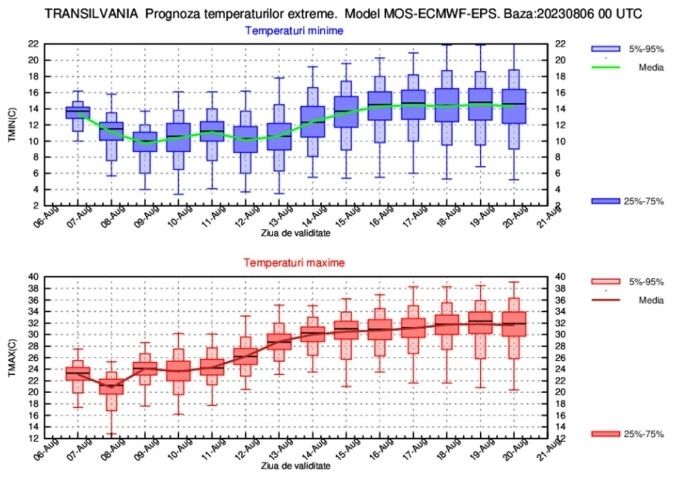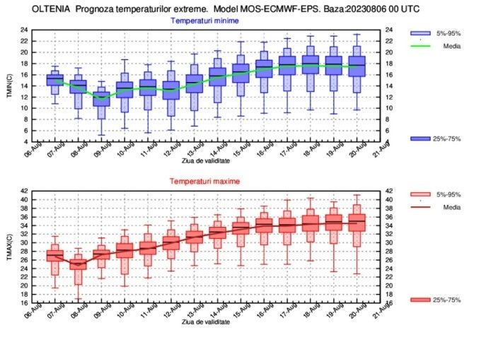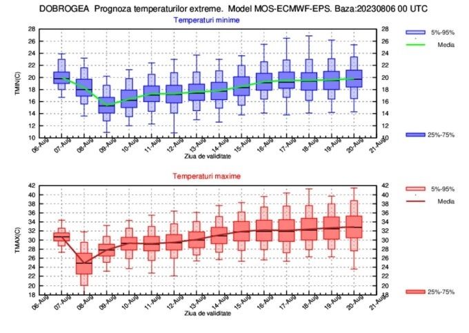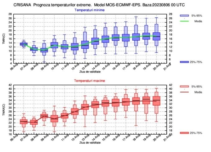 ESTIMAREA EVOLUŢIEI VALORILOR TERMICE ŞI A PRECIPITAŢIILOR ÎN INTERVALUL 07 AUGUST – 20 AUGUST 2023