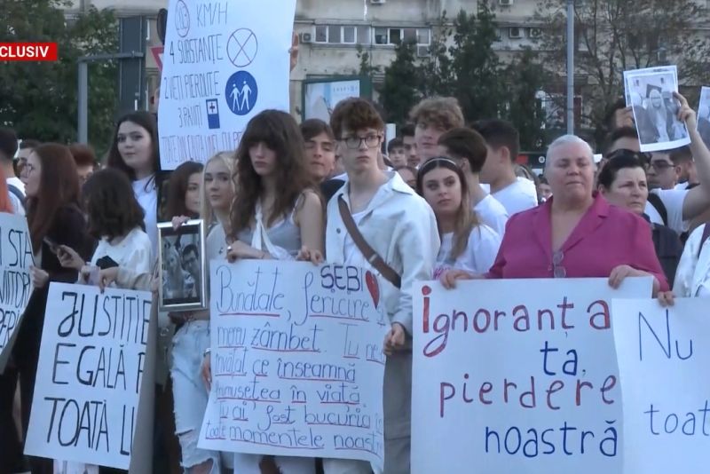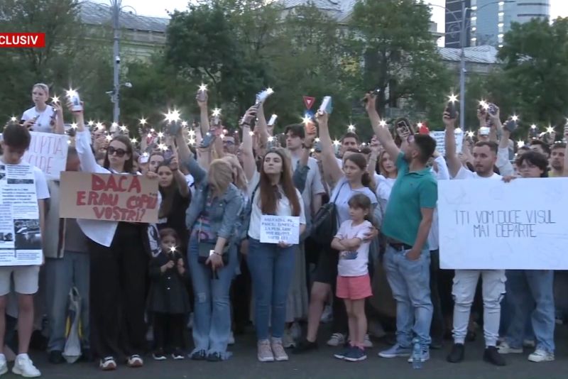 Una dintre profesoarele lui Sebi, prezentă și ea la protest a cerut participanților la manifestație să aprindă telefoanele în semn de amintire pentru Sebastian.