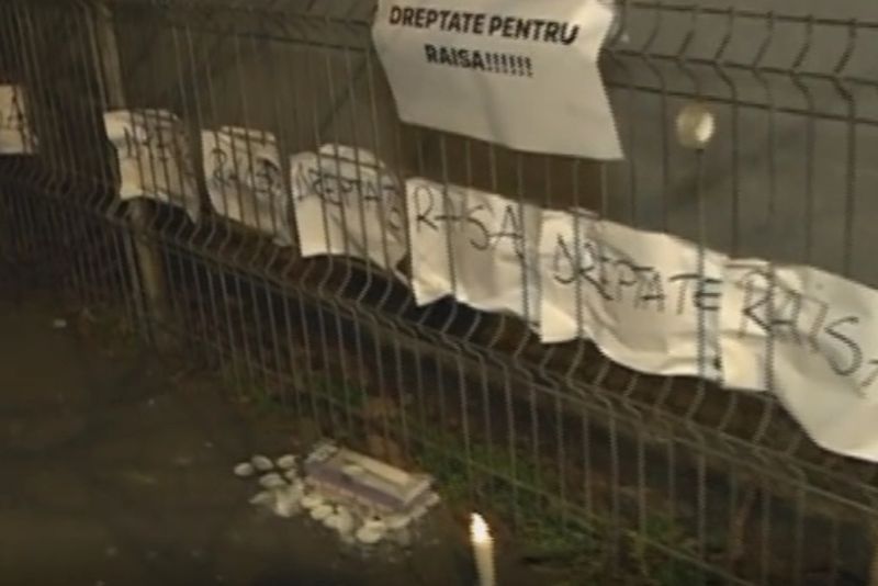 În fața secției de poliției, pe trotuar și pe gardul instituției au fost puse mai multe afișe cu mesajul „Dreptate pentru Raisa!” și lumânări în memoria fetiței de 11 ani ucise de polițist pe trecerea de pietoni.
