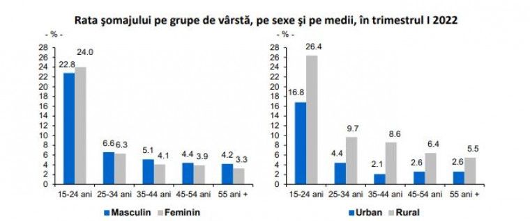 Rata șomajului în rândul tinerilor (15-24 de ani) este în creștere, după ce, cu un an în urmă, în primul trimestru din 2021, a fost de 21,5%, potrivit INS.