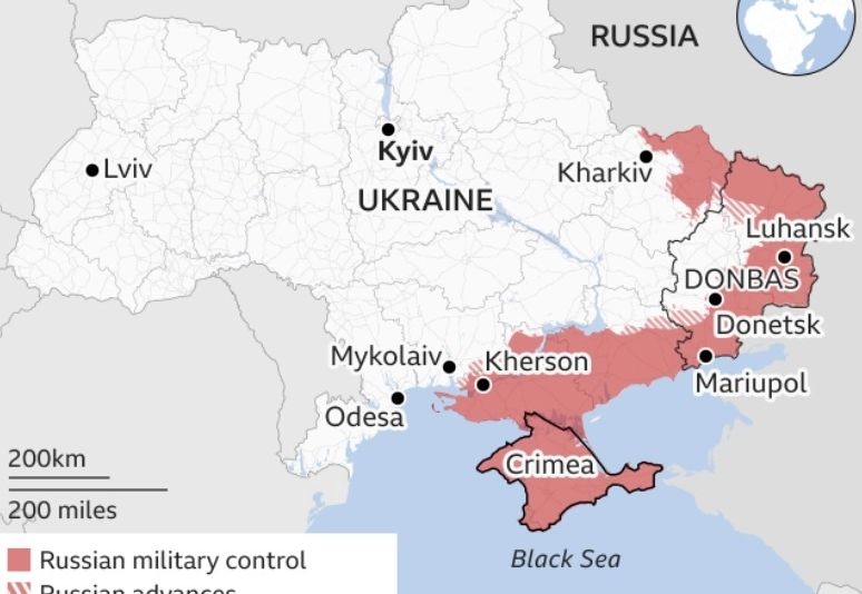 Rusia a invadat Ucraina pe 24 februarie, apoi forțele ruse s-au retras din jurul capitalei Kiev și din regiunile învecinate în Belarus și vestul Rusiei la începutul lunii aprilie. După plecarea rușilor au fost descoperite și marile tragedii din zona Kievului: gropi comune, cadavre pe străzi, urme de tortură pe trupurile fără viață găsite în subsolurile caselor și al clădirilor de locuințe. Cele mai cutremurătoare atrocități rămân cele din zona Kievului, de la Bucha, Borodianka. După retragerea din centrul Ucrainei, ruși iau început ofensiva în est și sud-est pentru cucerirea regiunilor separatiste proruse din Donbas - Donețk și Lugansk - și a orașelor de pe culoarul terestru către Crimeea, anexată ilegal în 2014. Rezistența puternică a forțelor ucrainene de lângă Mikolaiv în vest și la Mariupol în est a încetinit semnificativ avansul rușilor.