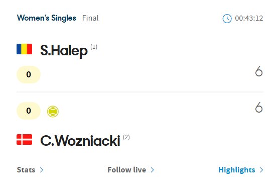 UPDATE 12:27. Halep vs Wozniacki, 0-1.