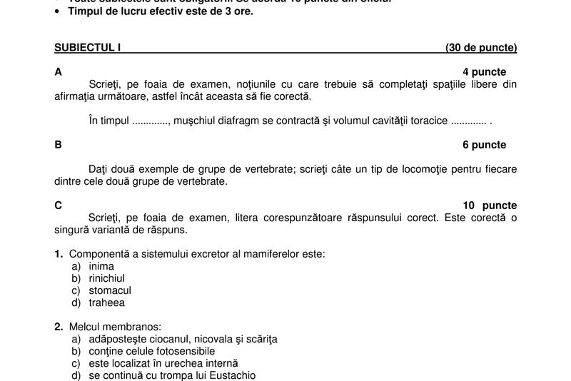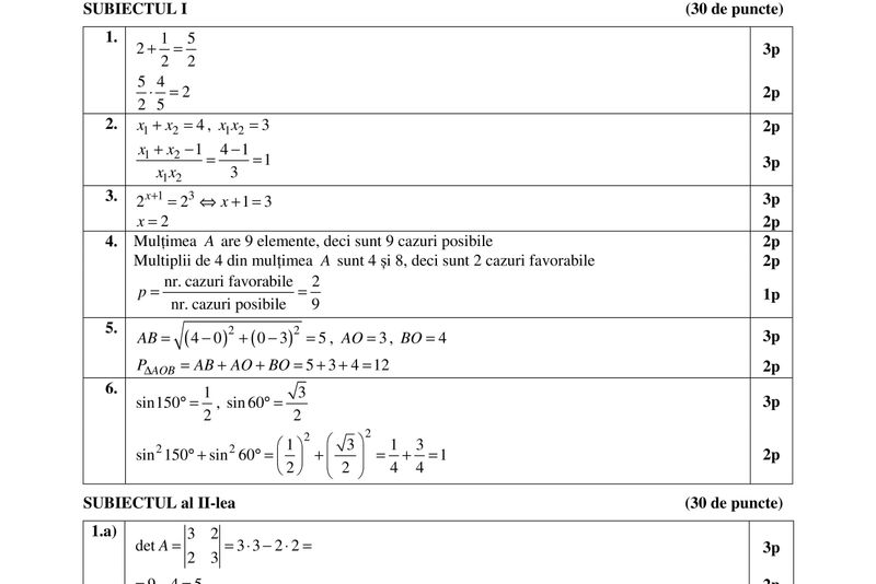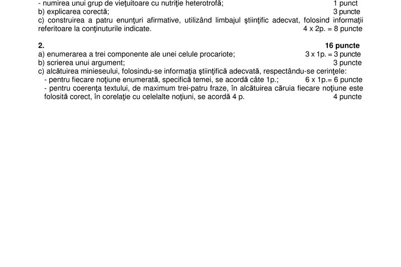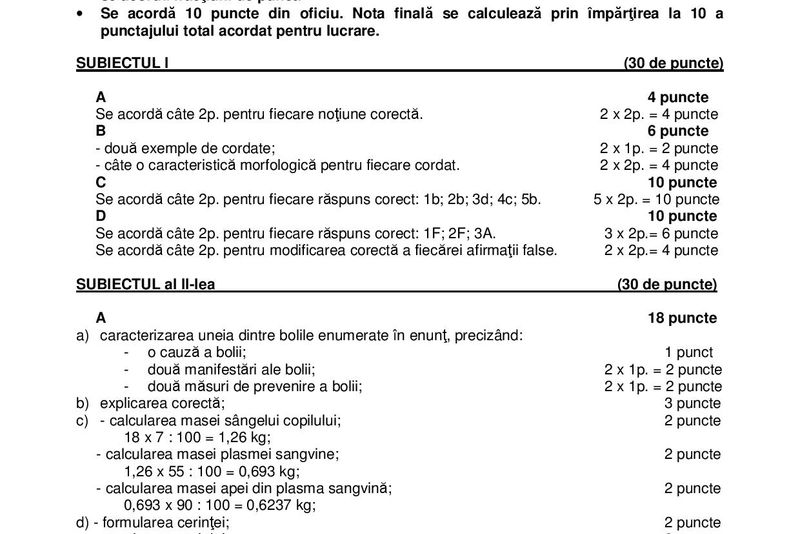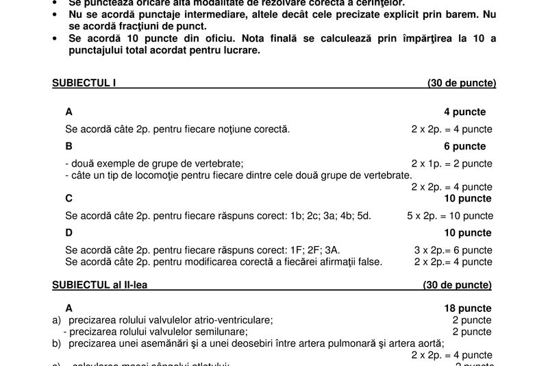 - Nu se acordă fracţiuni de punct, dar se pot acorda punctaje intermediare pentru rezolvări parţiale, în