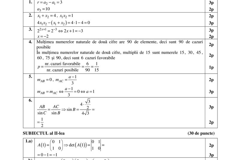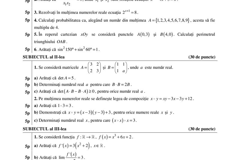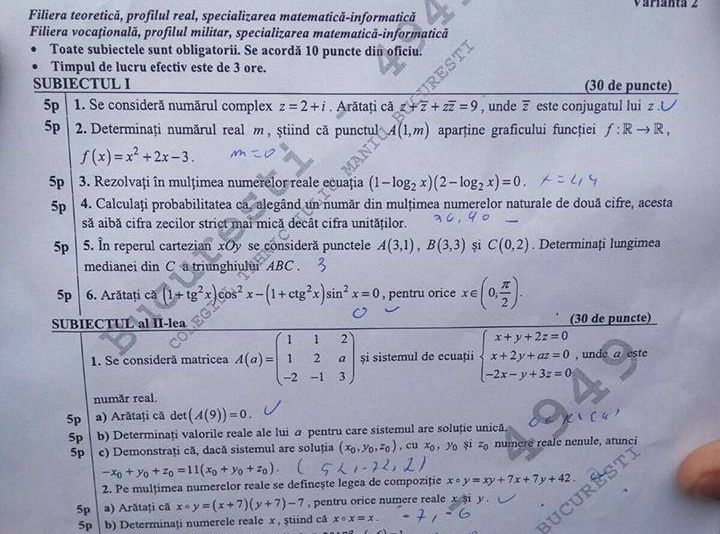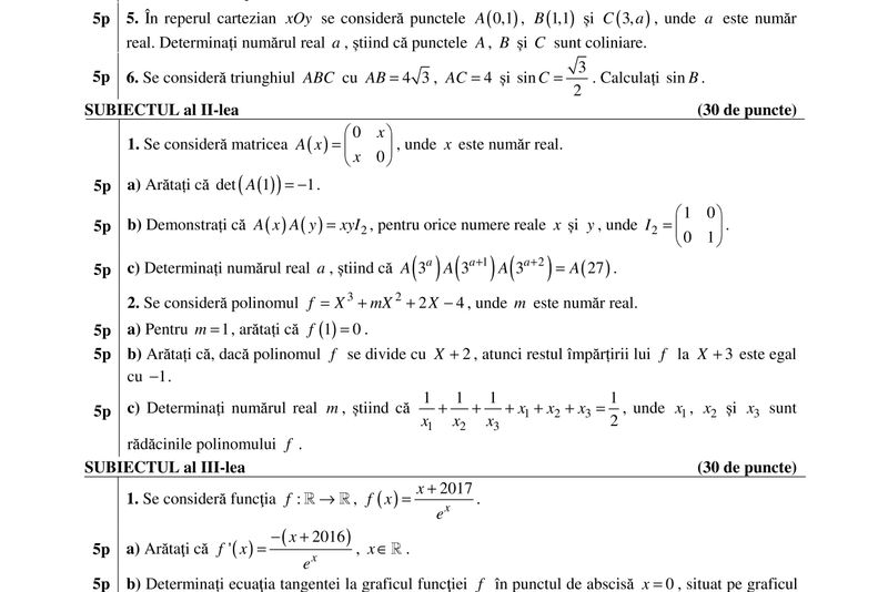 BAREM Matematica BAC 2017 M1, M2, M3 UPDATE: s-au publicat subiectele și baremul de corectare. Mai jos: