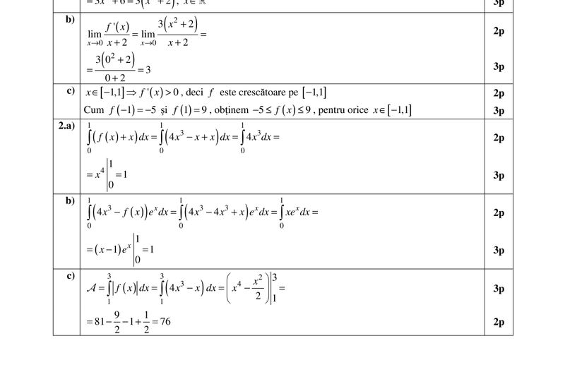 limitele punctajului indicat în barem.