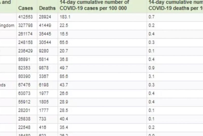 Din păcate, țara noastră se află în continuare în topul negativ COVID-19 din Uniunea Europeană. Potrivit Centrului European de Prevenire și Control al Bolilor (ECDC), România are cea mai mare rata cumulată de decese - 3.1 la suta de mii de locuitori în ultimele 14 zile și este pe al patrulea loc în ceea ce privește rata cumulată de infectare cu noul coronavirus în ultimele 14 zile la suta de mii de locuitori - 85,6, după Spania - 183,1, Malta - 120,1, Luxemburg - 97,1.