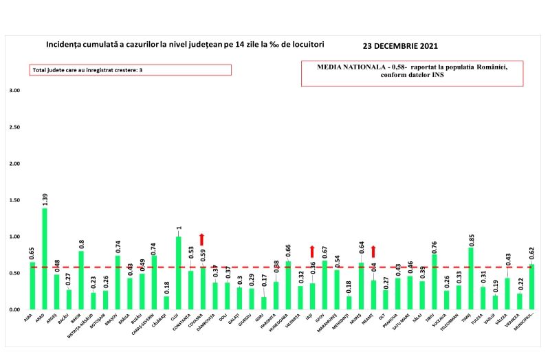Cu o medie națională de 0,58, România intră în mini-vacanța de Crăciun, privind, totuși, cu îngrijorare spre perioada imediat următoare, când atât autoritățile centrale, cât și specialiștii din Sănătate atrag atenția că va urma un val 5 cu un impact mai mare comparativ cu valurile precedente. Potrivit specialiștilor, este o chestiune de doar câteva săptămâni până când ne vom confrunta cu valul 5 al pandemiei de COVID. Ministrul de Interne, Lucian Bode, a cerut, chiar astăzi, mobilizarea generală către toate structurile din interiorul MAI de la nivel național, pentru prevenirea și limitarea răspândirii COVID-19.