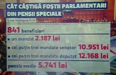 Este vorba de 841 de foști aleși, dintre care 259 sunt foști senatori și 582 sunt foști deputați. Pentru aceștia, statul român trebuie să le plătească în continuare pensiile speciale, potrivit deciziei CCR. În plus, trebuie plătite retroactiv și pensiile speciale aferente celor 5 luni în care foștii parlamentari nu au beneficiat, relatează Realitatea PLUS.
