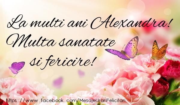MESAJE LA MULȚI ANI. La mulți ani, Alexandra. In viată sa te împiedici de un bolovan de noroc, sa calci într-o balta de fericire, sa te stropești din cap pana in picioare cu iubire si sa fii sănătoasă!