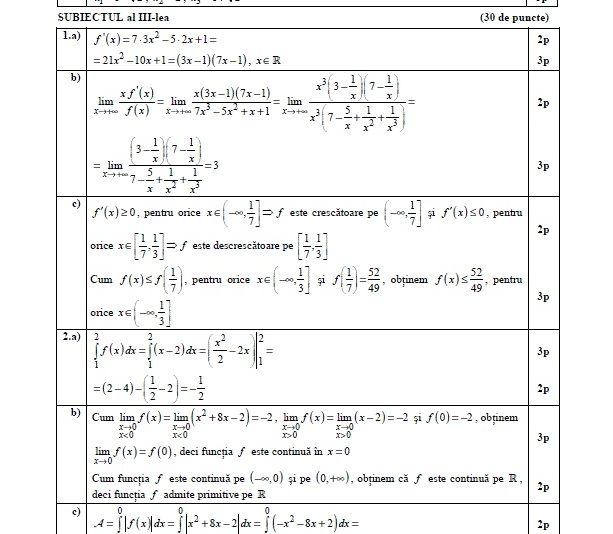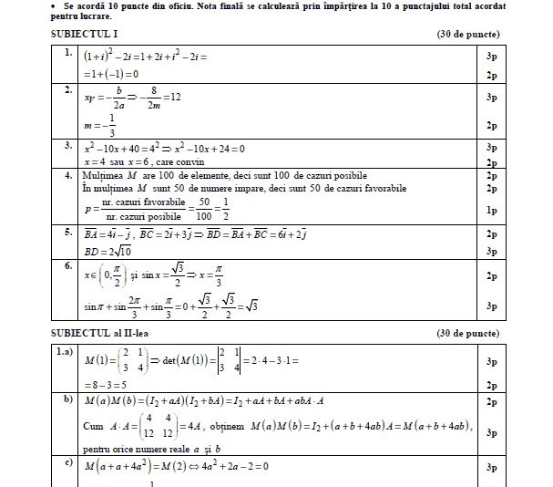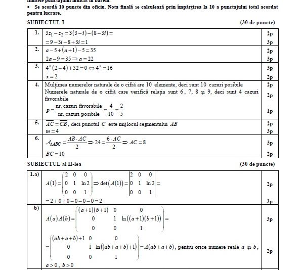 Barem Matematică M3 BAC 2019