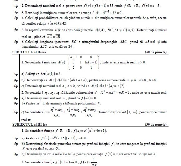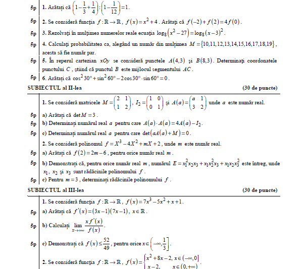 Subiecte Matematică M3 BAC 2019