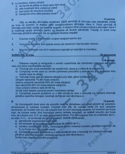 Subiecte BIOLOGIE BAC 2016 sesiunea august:
