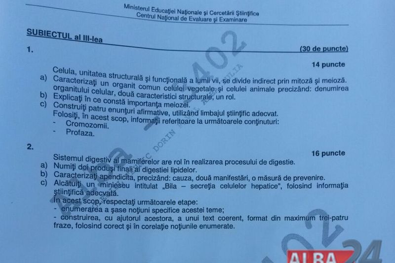 Subiecte BIOLOGIE BAC 2016 sesiunea august. Daca diferenta dintre note este mai mare de 0,50 puncte, presedintele comisiei repartizeaza lucrarea unui al treilea profesor evaluator, care in prezenta profesorilor evaluatori initiali stabileste nota finala la BAC 2016.