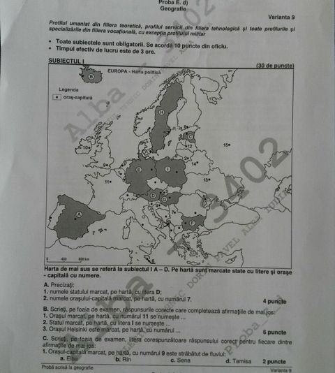 Subiecte GEOGRAFIE BAC 2016 sesiunea august. Iată ce subiecte au picat la ISTORIE la BAC 2016 sesiunea august: