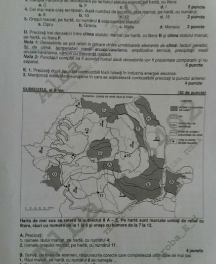 Subiecte GEOGRAFIE BAC 2016 sesiunea august: