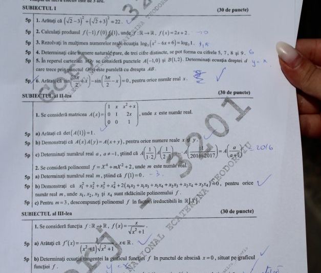 BACALAUREAT 2016 MATEMATICĂ - LIVE UPDATE 11:30: Mulţi elevi s-au declarat mulţumiţi de subiectele primite la matematică. Mai jos, puteţi vedea care au fost acestea: