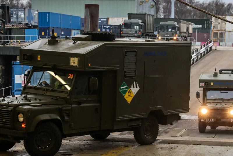 În total, 730 de vehicule militare au fost încărcate la bordul a trei feriboturi la Sea Mounting Centre din Marchwood, Hampshire, înaintea exercițiului Steadfast Dart 25, ce are scopul de a prezenta capacitatea NATO de mobilizare rapidă în toată Europa.