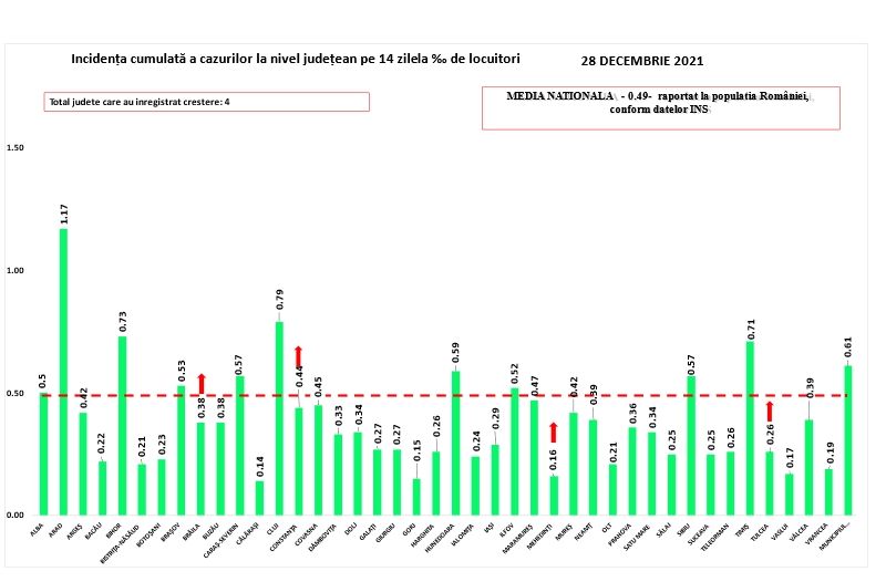 Incidența înregistrată la 14 zile