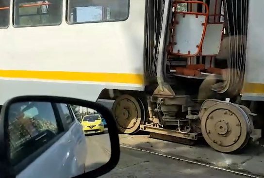 Un tramvai s-a rupt în două în mijlocul drumului, în București!