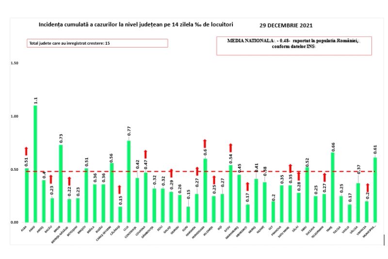 Coeficientul infectărilor cumulate la 14 zile, raportate la 1.000 de locuitori este calculat de către Direcțiile de Sănătate Publică, la nivelul Municipiului București și al județelor.