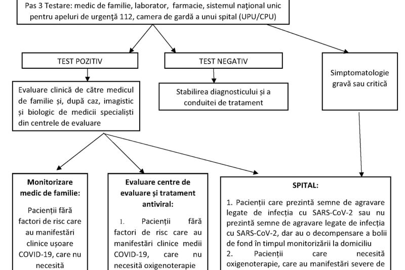 Important de știut este faptul ca orice persoană care are simptome de COVID trebuie să urmeze anumiți pași pentru a fi testată, diagnosticată și a primi tratament, în funcție de cum se manifestă boala.