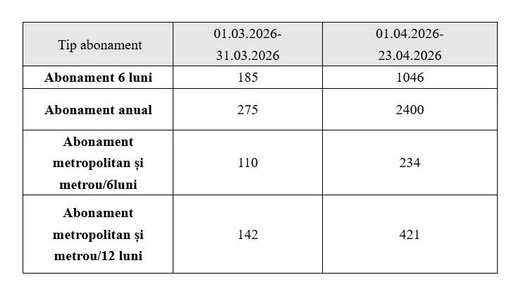Planul de majorare, solicitat de Consiliul de Administrație al Metrorex, prevedea creșteri de preț pentru toate tipurile de titluri de călătorie. O singură călătorie ar fi urmat să coste 7 lei, față de 5 lei în prezent, în timp ce cartela de 10 călătorii ar fi urcat la 55 de lei. Nici abonamentele nu au fost scutite de proiecții pesimiste: cel lunar ar fi sărit de la 100 la 140 de lei, iar cel anual ar fi suferit o scumpire record, de la 900 la 1.300 de lei. Această perspectivă i-a determinat pe utilizatorii rețelei subterane să calculeze rapid economiile posibile și să acționeze preventiv.