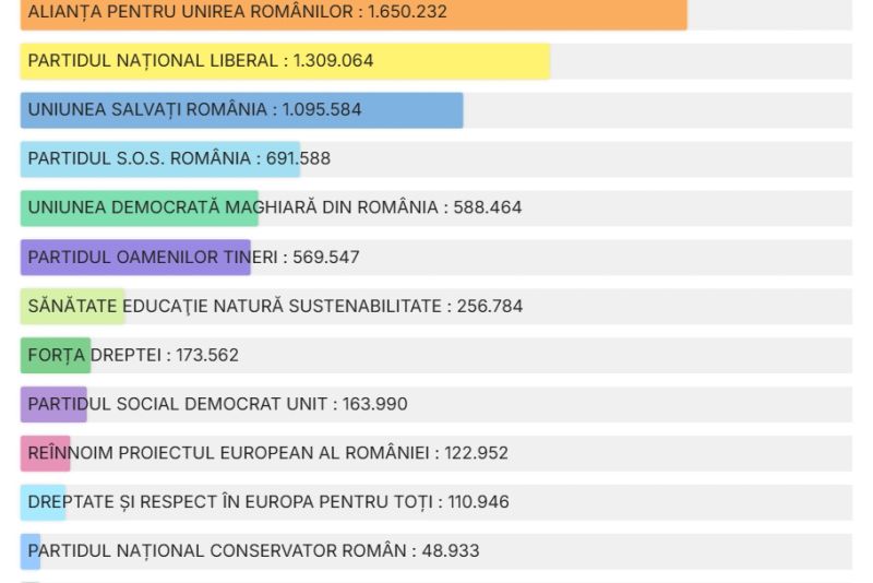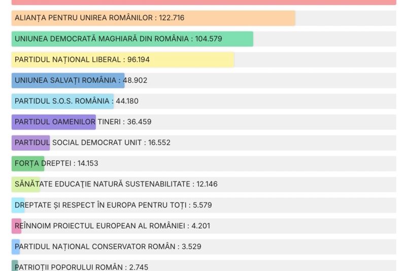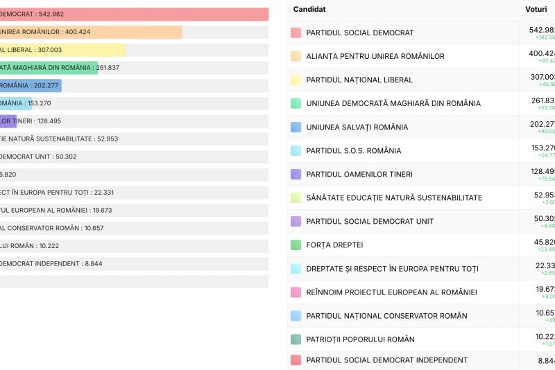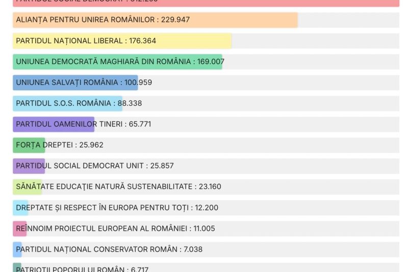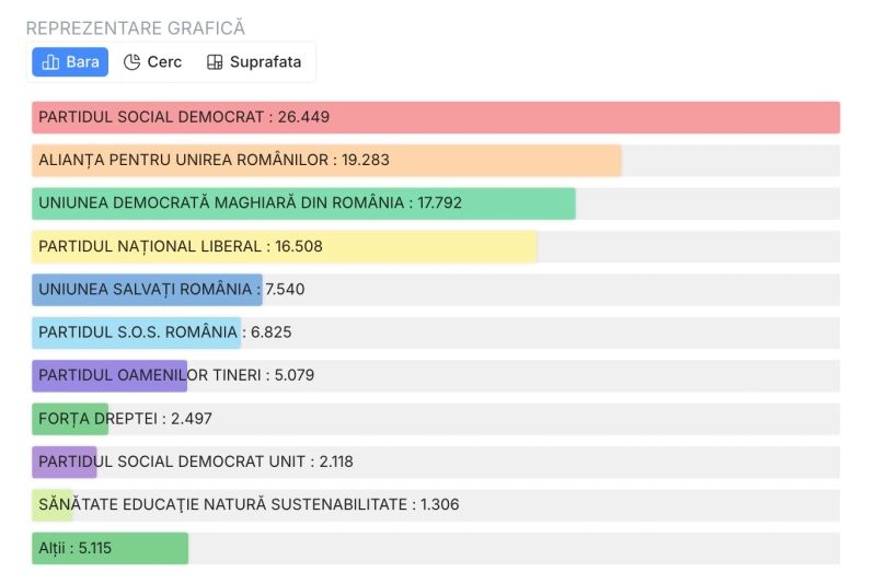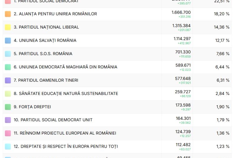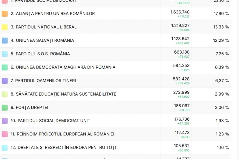 UPDATE 16.00 - După centralizarea tuturor proceselor verbale, PSD s-a situat pe primul loc, urmat de AUR și PNL.