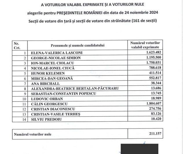 CCR a respins, în unanimitate, ANULAREA primului tur al alegerilor prezidențiale, Turul 2 are loc pe 8 decembrie, între Călin GEORGESCU și Elena LASCONI - DOCUMENT