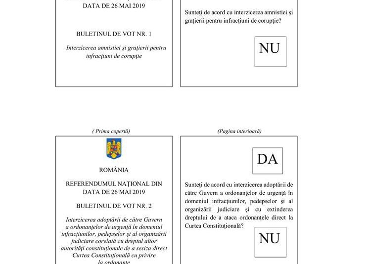 Și în acest caz, Autoritatea Electorală Permanentă a dat publicității, tot pe pagina sa de Facebook, modele de buletin de vot pentru Referendumul Național din data de 26 mai 2019: