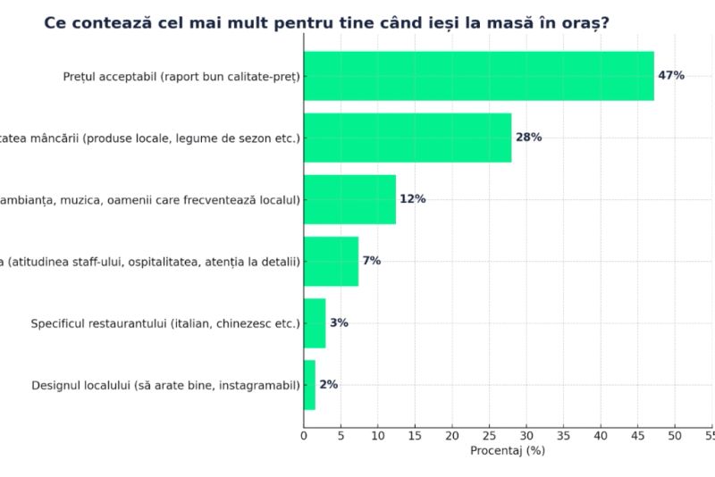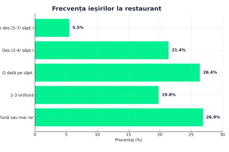 Un sondaj recent aduce date îngrijorătoare pentru industria HoReCa, în contextul scăderii puterii de cumpărare a românilor, ca urmare a scumpirilor accelerate din ultima perioadă. Întrebați la ce ar renunța pentru a face economii, majoritatea respondenților au indicat mesele la restaurant, iar trei sferturi dintre ei au declarat că și-au redus deja ieșirile în oraș din cauza prețurilor.