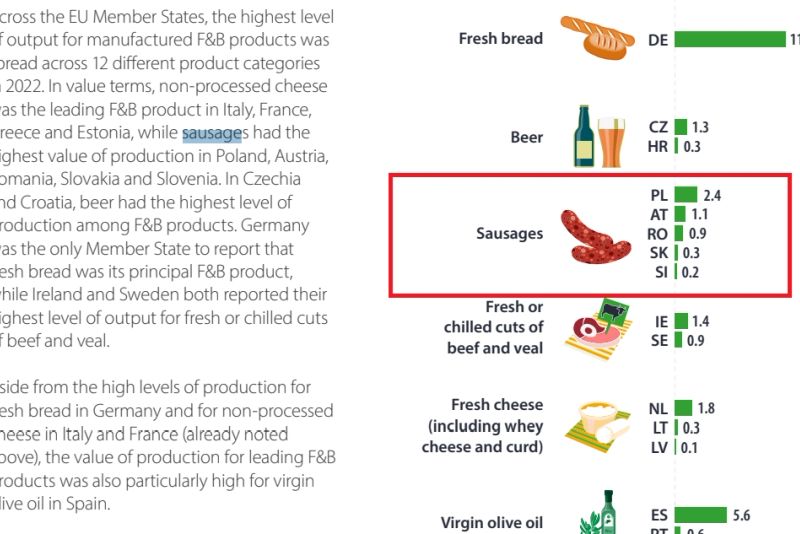 Performanța României este cu atât mai importantă cu cât în raportul precedent țara noastră nu se regăsea între marii fabricanți de cârnați din Europa.
