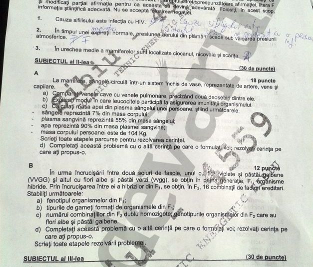 UPDATE! SUBIECTE BACALAUREAT 2015 BIOLOGIE: Ce s-a dat anul trecut