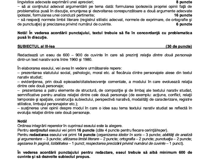 Subiect III Bacalaureat 2015 Limba și literatura română (30 de puncte)
