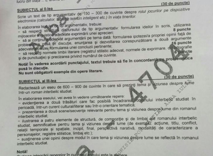 BACALAUREAT 2016 SUBIECTE ROMÂNĂ. Toate sălile de EXAMEN vor fi supravegheate video şi audio. Vor fi supravegheate, în acelaşi mod, şi sălile în care se vor descărca şi se vor multiplica SUBIECTELE şi sălile în care se vor prelua, evalua şi depozita lucrările scrise.