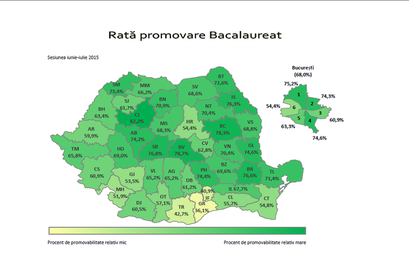 Harta cu promovabilitatea pe judeţe la BACALAUREAT 2015 înainte de contestaţii! IMAGINI
