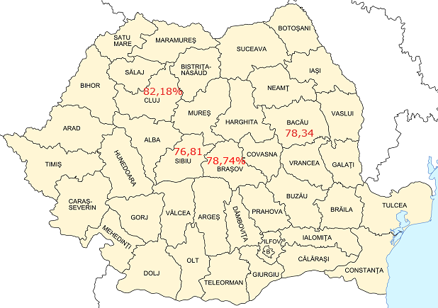 UPDATE REZULTATE BAC 2015: Rezultatele BAC arată că Clujul este județul cu cea mai mare promovabilitate. 82% dintre elevii din acest județ au promovat Bacalaureat 2015. La polul opus e Giurgiu, cu puțin peste 30% rată de promovabilitate.