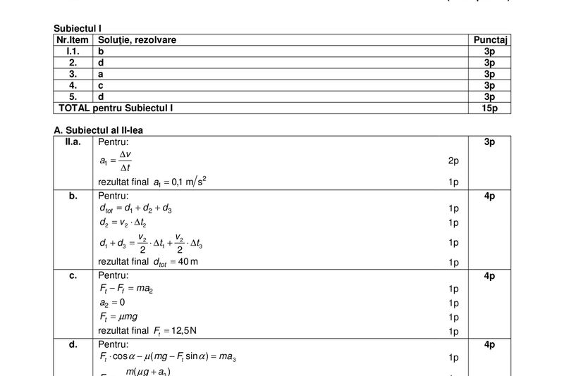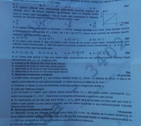 Subiecte BAC 2016 Fizică. Fiecare lucrare este notata de cate doi profesori. La corectare, daca diferenta dintre notele date de cei doi evaluatori este mai mica de 0,50 puncte, nota finala este media aritmetica cu doua zecimale a celor 2 note, fara rotunjire.