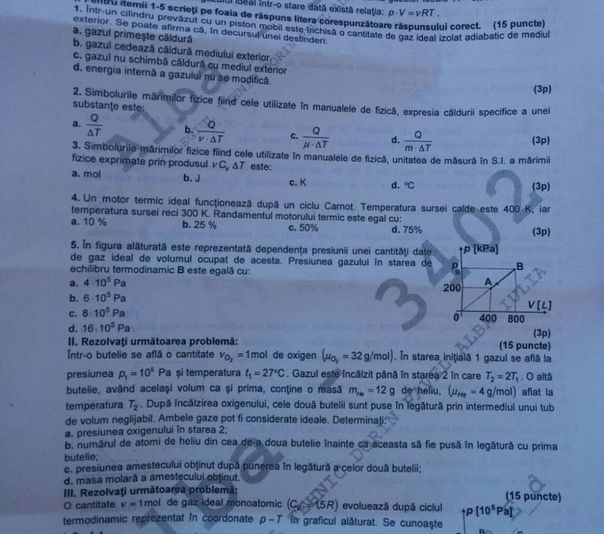 Subiecte BAC 2016 Fizică. Elevii nu au voie sa vorbeasca intre ei sau cu exteriorul si nici sa schimbe intre ei foi de lucrare, ciorne, notite sau orice alte materiale care pot fi folosite la rezolvarea subeictelor.