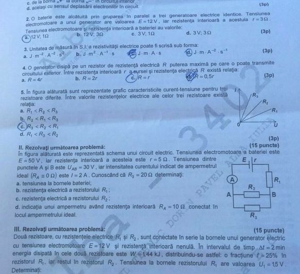 Subiecte BAC 2016 Fizică. Accesul candidaţilor în săli este permis pe baza actului de identitate, cel mai târziu cu 30 de minute înainte de începerea probei.