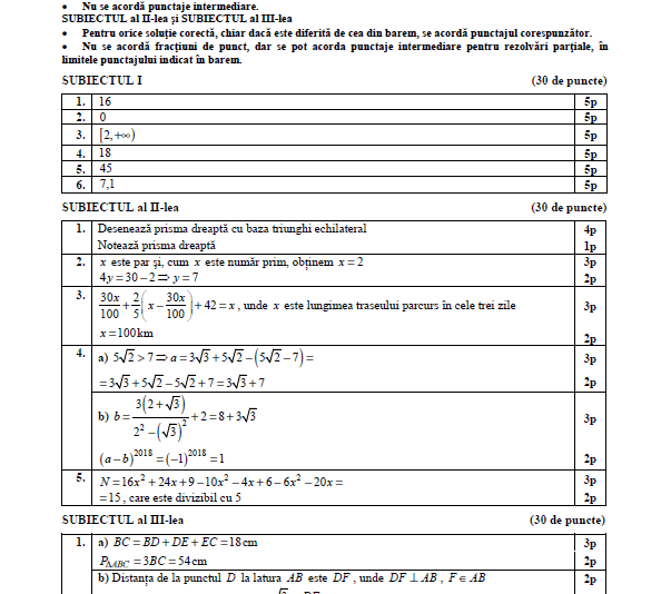Barem matematica Evaluare Nationala 2019. De asemenea, elevii sunt informaţi că este interzis accesul în săli cu orice fel de lucrări (manuale, dicţionare, notiţe, însemnări etc., care ar putea fi utilizate pentru rezolvarea subiectelor), precum şi cu orice mijloc electronic de calcul, de stocare de informații sau de comunicare: stick-uri de memorie, telefoane, tablete etc.