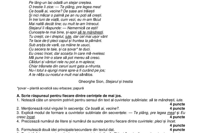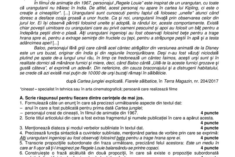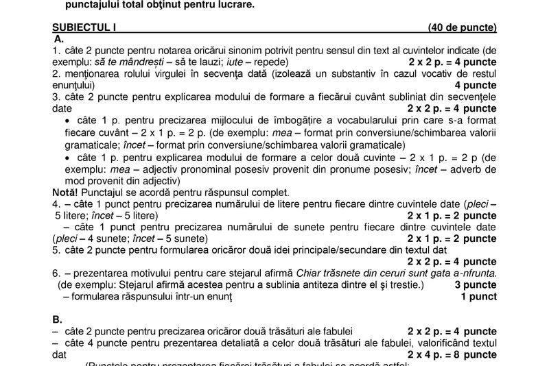 Iată subiecte şi barem de corectare la ROMÂNĂ - simulare Evaluare Naţională 2018: