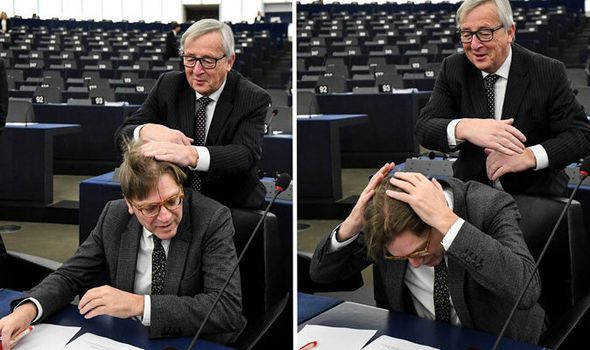 Altă scenă memorabilă rămâne cea în care Jean-Claude Juncker îl ciufulește și „îl spală” pe cap pe europarlamentarul Guy Verhofstadt, în februarie 2018, în plenul arlamentului European, la Strasbourg.